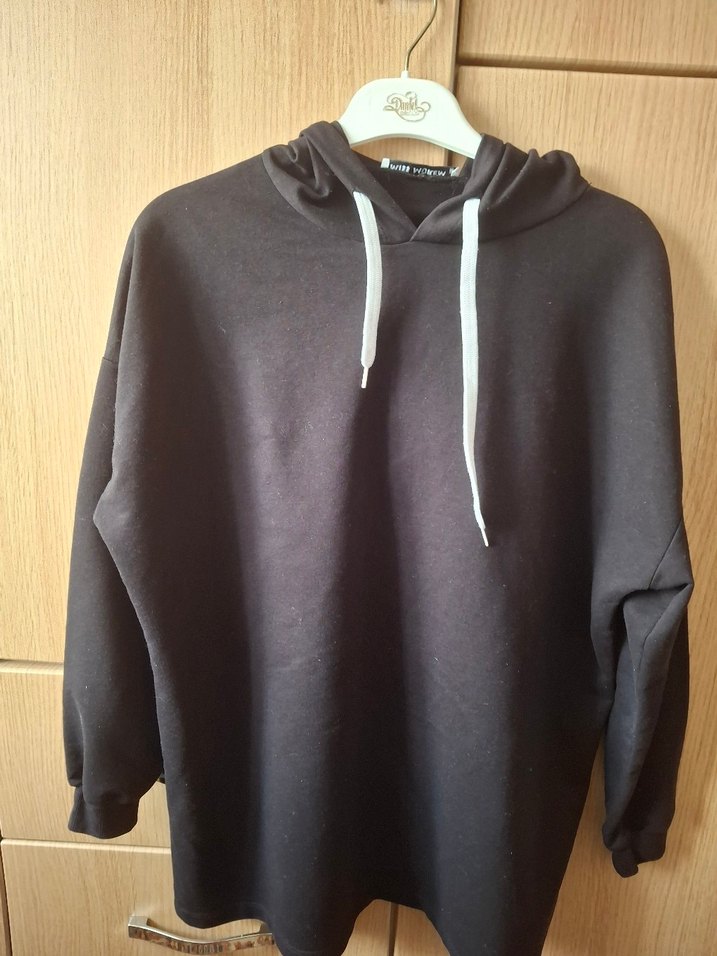 Siyah renkte, kapüşonlu ve uzun kollu, bol kesim kadın sweatshirt. Yumuşak ve sıcak kumaştan üretilmiş, günlük kullanıma uygun rahat ve şık bir model. Omuz 59 cm ,kol altı 60 cm ,boy 65 cm ,hafif tüylü