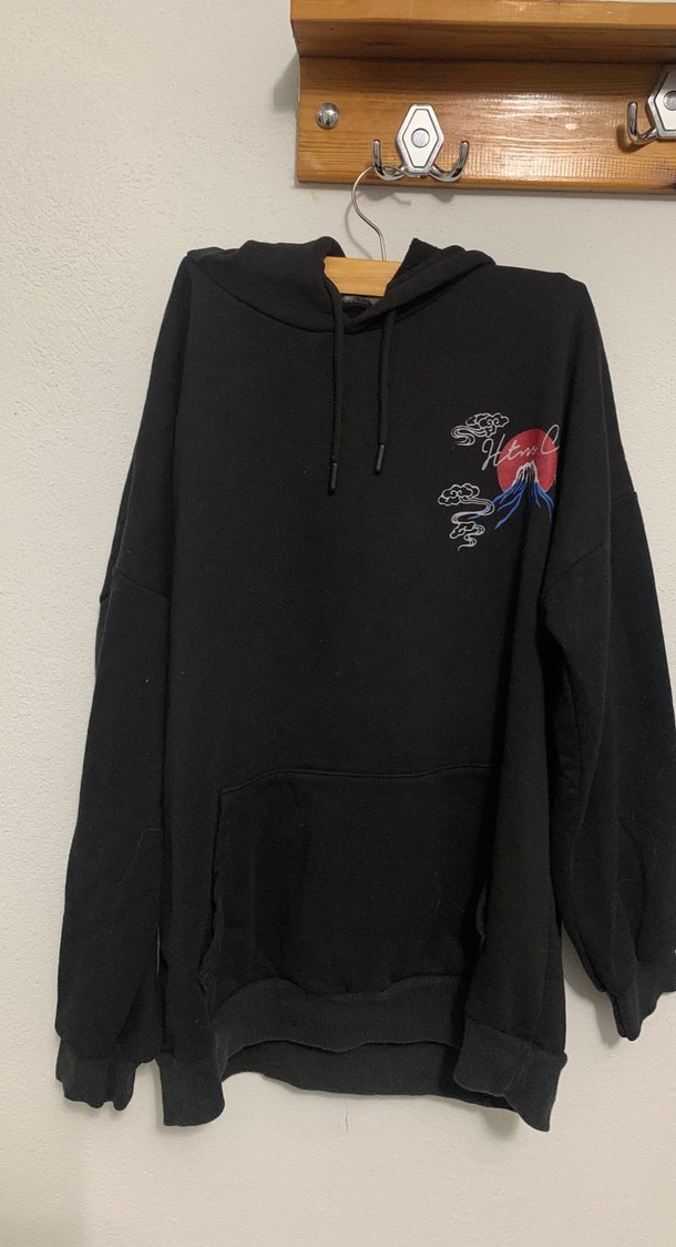 kadın sweatshirtü kapüşonlu, uzun kollu ve bol kesimdir. Hiçbir sorunu yoktur