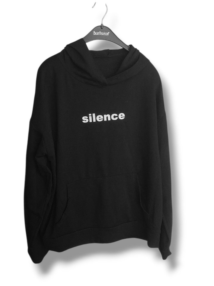 Siyah kapüşonlu sweatshirt, uzun kollu ve bol kesimdir. Yumuşak ve sıcak kumaştan, kısa boyda, önünde "silence" baskısı ile rahat ve şık bir görünüme sahiptir.Armalifedan aldığımı hatırlıyorum