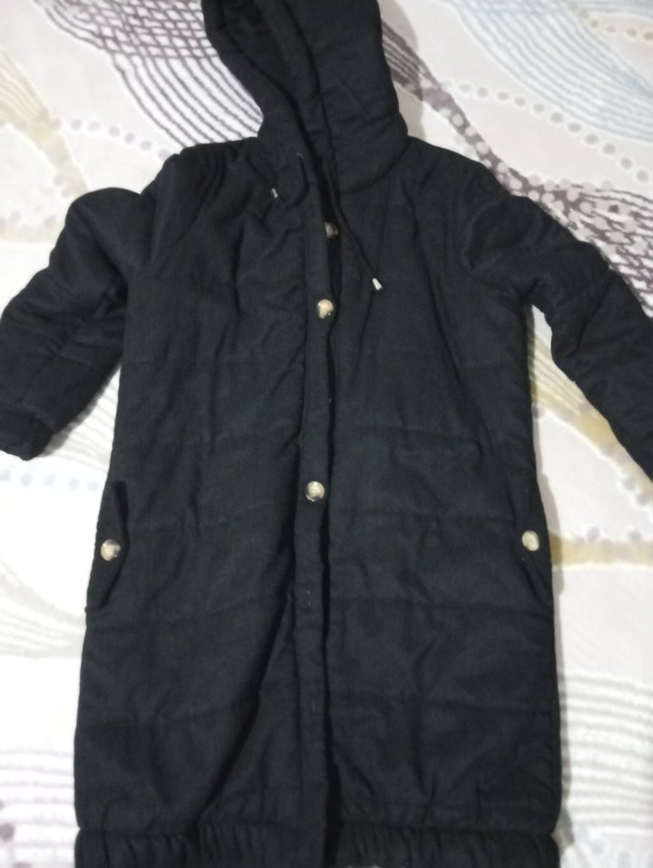 Siyah, düğmeli ve kapüşonlu uzun kadın kışlık mont. Rahat kesimli, uzun kollu ve yumuşak sıcak tutan kumaştan üretilmiştir. Günlük sokak stili için uygundur. ❄️