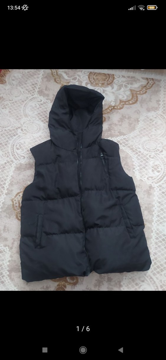 Siyah kapüşonlu, kolsuz yelek, yumuşak ve sıcak kumaştan, kürk detaylıdır. Normal midi boyda ve straplez yakaya sahiptir. Rahat sokak tarzı için uygundur.