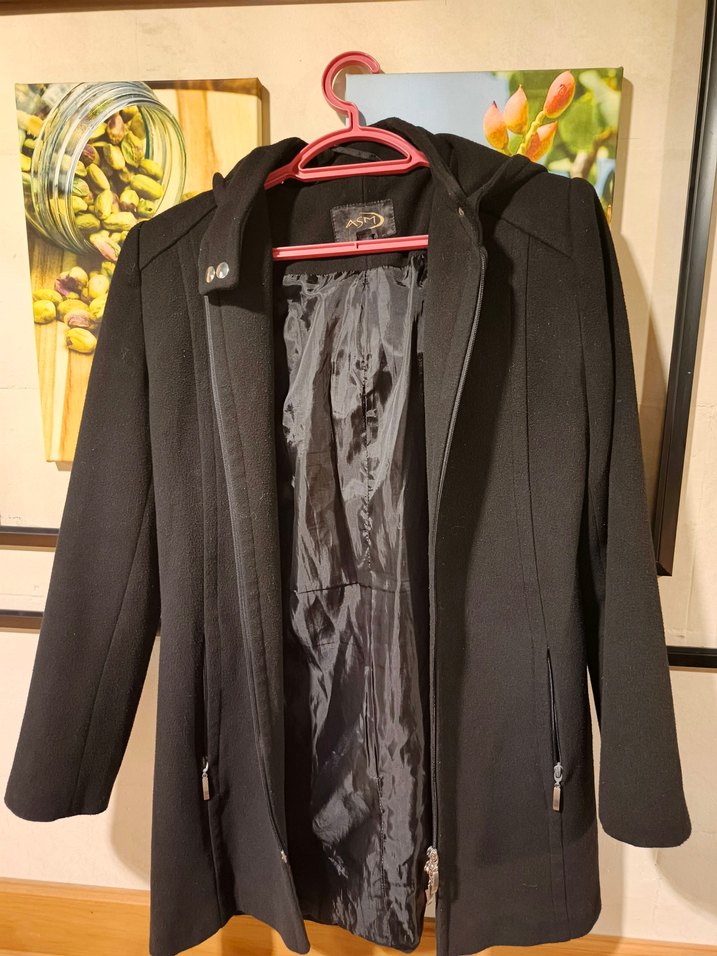 S beden uyumlu siyah kaban kapüşonlu ve fermuarlı ceplidir, iç kısmı rahatlık sağlayan astarla tamamlanmıştır. Soğuk havalar için uygundur.Slimfit kesim.Diz üstü