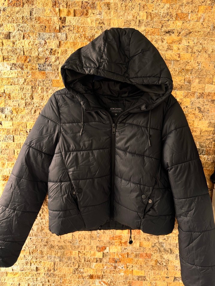 Siyah kapüşonlu, fermuarlı, uzun kollu mont bir sorunu yok.En 49 cm, Boy 52 cm