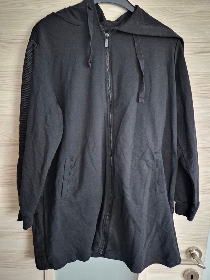 Siyah renkte, kapüşonlu ve fermuarlı midi hamile ceketi. Uzun kollu, bol kesim ve yumuşak keten kumaştan üretilmiştir. Günlük kullanıma uygundur.