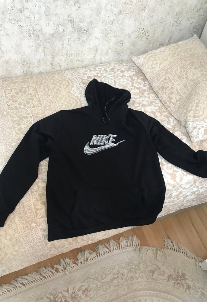 Siyah renkte, kapüşonlu ve uzun kollu Nike sweatshirt. Önden baskılı logo ve yumuşak, sıcak kumaş kullanılmıştır. Rahat kesimlidir.