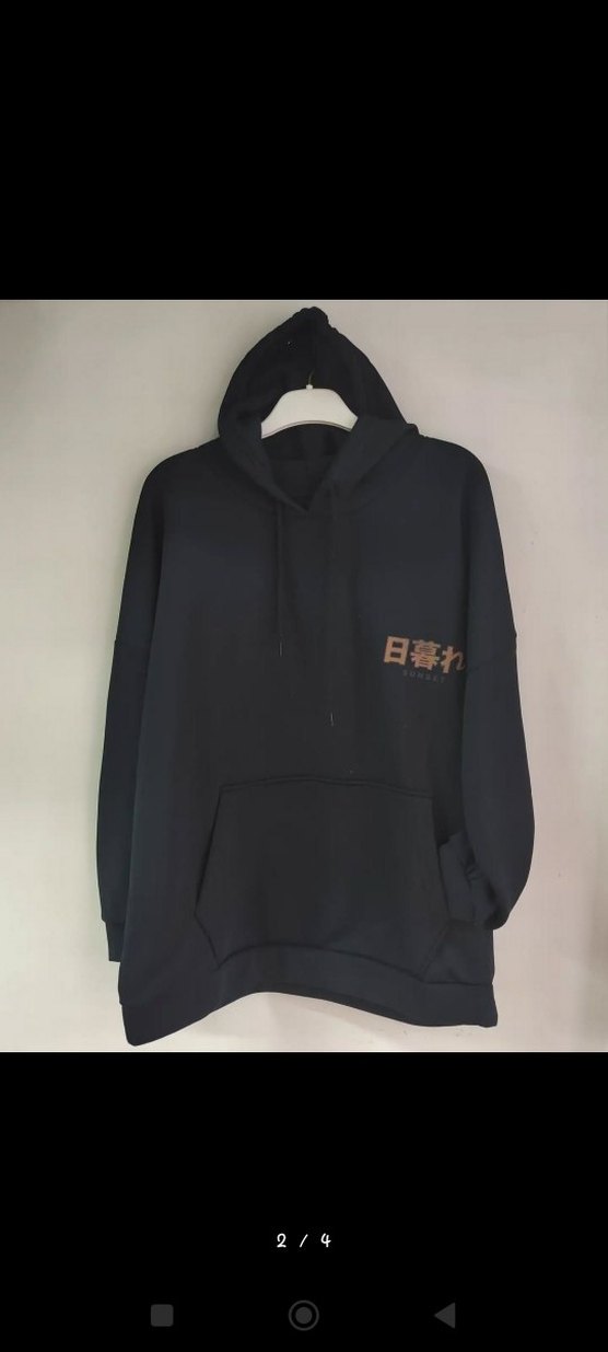 Siyah kapüşonlu sweatshirt uzun kollu ve bol kesimdir, yumuşak ve sıcak kumaştan üretilmiştir. Baskılı detayları ve ön cebiyla gündelik stil için uygundur.