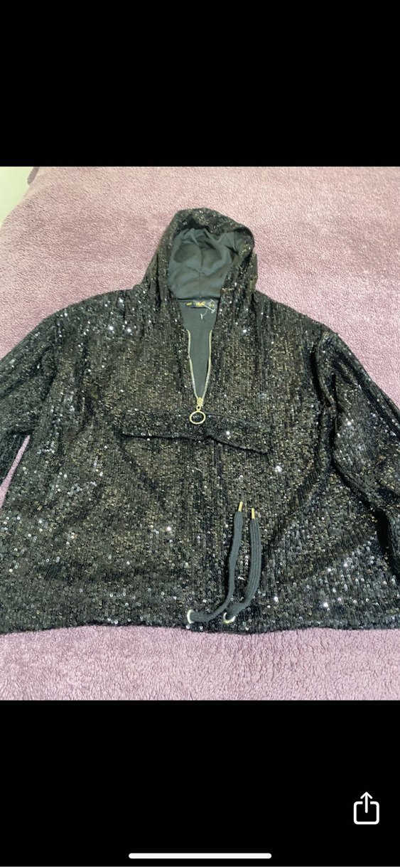 Siyah Kapüşonlu Payetli Kadın Ceket