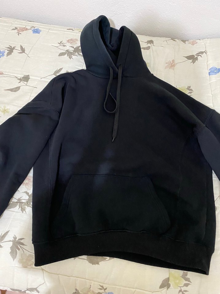 Siyah kapüşonlu sweatshirt, rahat kesim ve uzun kolludur. Yumuşak ve sıcak kumaştan üretilmiştir.