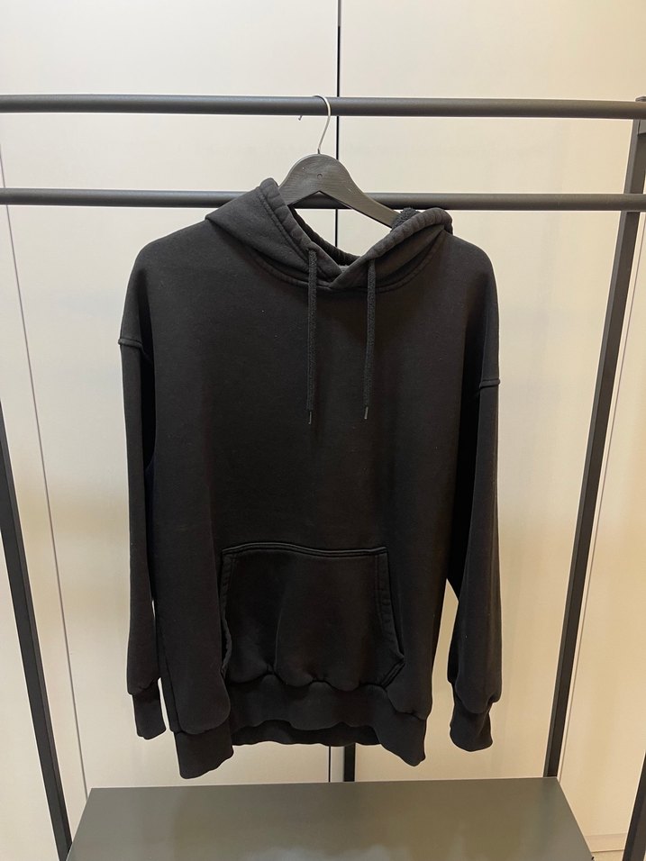 Siyah kapüşonlu, uzun kollu, rahat kesim sweatshirt, yumuşak ve sıcak kumaştan üretilmiştir. Günlük kullanım için uygundur.