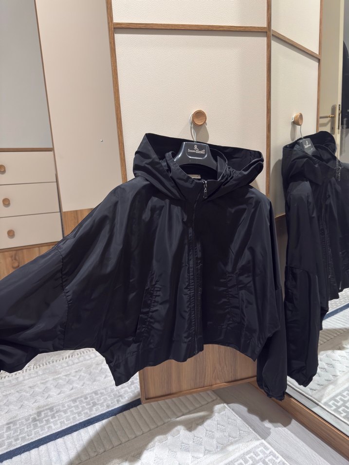 Siyah Kapüşonlu Salaş Kadın Ceket