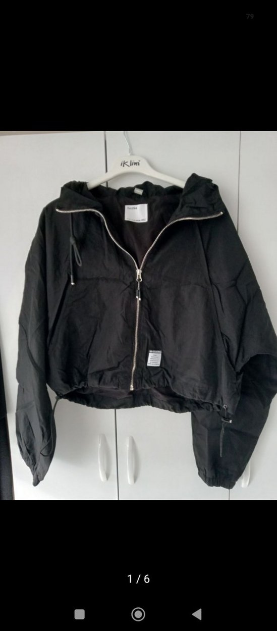 Siyah keten kumaştan, yüksek yakalı ve fermuarlı ceket. Bol kesim, uzun kollu ve midi boyda, günlük kullanıma uygun. Desensiz ve rahat sokak stili.