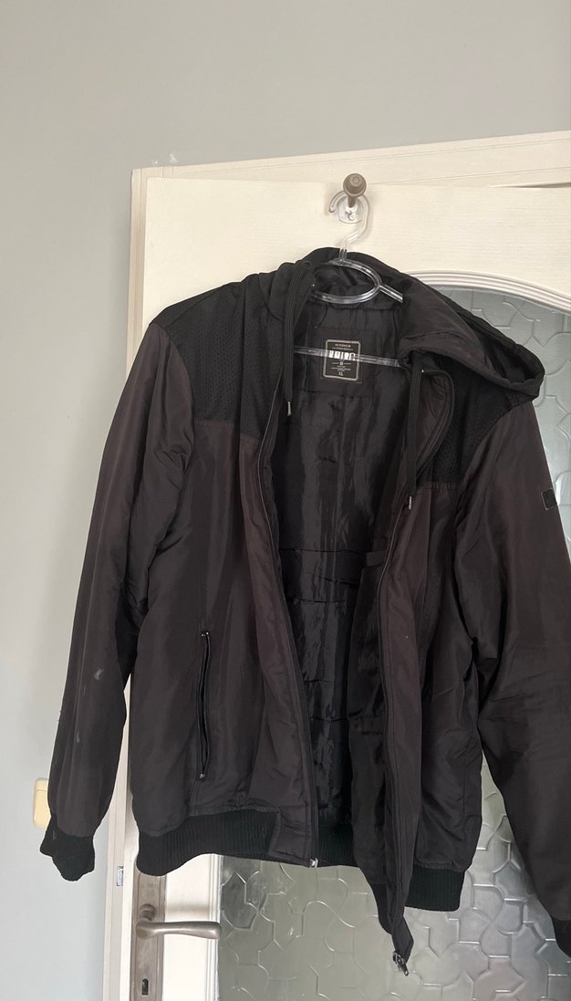 Siyah Kapüşonlu Spor Erkek Mont