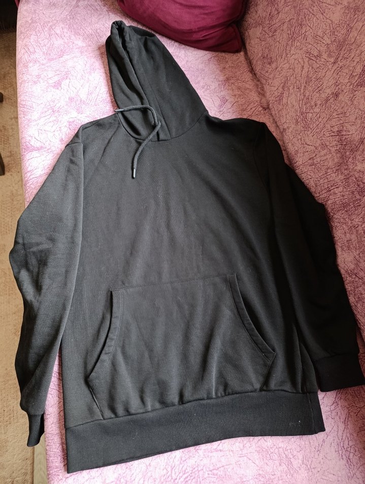 siyah kapüşonlu sweatshirt, yuvarlak yaka ve uzun kollu, rahat kesimdir. Yumuşak ve sıcak kumaştan, ön cep ve kapüşonludur. Boy 69 cm en 47.5 cm