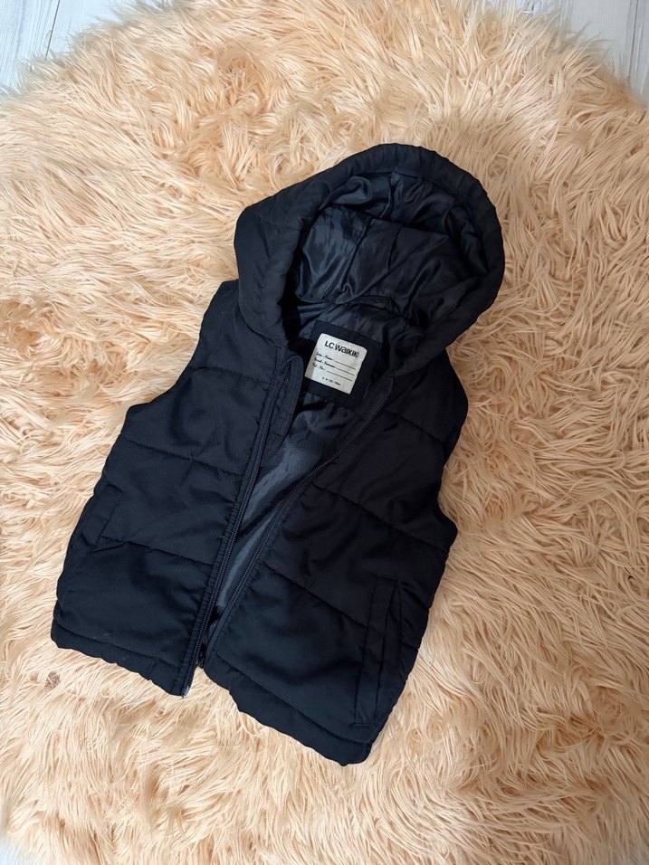 Fermuarlı, kapüşonlu, kolsuz siyah şişme yelek, yumuşak ve sıcak tüylü kumaştan üretilmiştir. Midi boyda, sade ve desen içermeyen tasarımıyla günlük kullanıma uygundur.