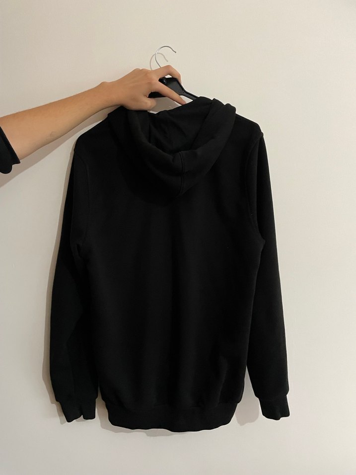 Fitted kesim siyah kapüşonlu sweatshirt, uzun kollu ve yumuşak, sıcak kumaştan. Günlük kullanım için uygun, desensiz sade tasarım Ralp Lauren Orjinal değil ama temiz kullanılmış uygun fiyat