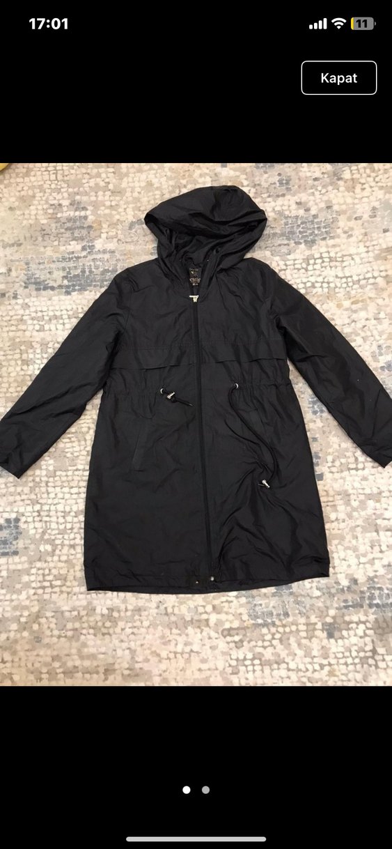 Bu uzun siyah kadın ceketi kapüşonlu, fermuarlı ipli. Sentetik kumaştan yapılmış olup, sokak stili ve dış mekan için uygundur, kırlangıç yaka ve uzun kolludur.