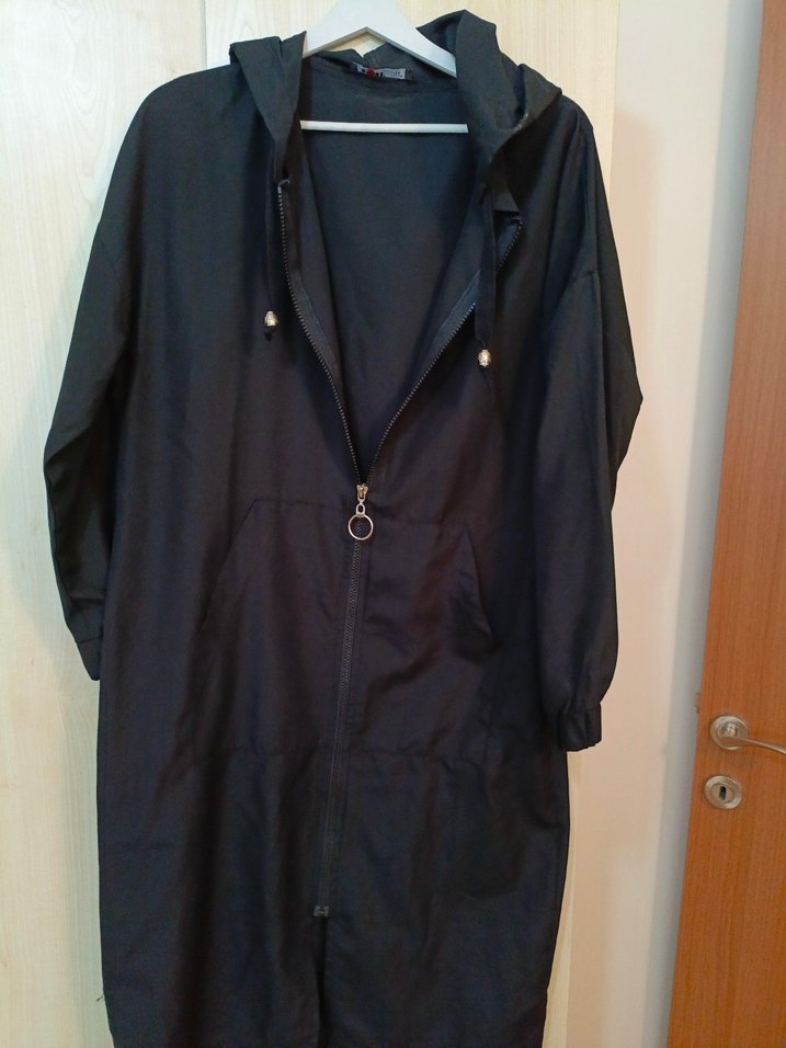 Siyah uzun kadın giy-çık.fermuarlı ön ve kesik yaka detayıyla bol kesimdir. Sentetik kumaştan üretilmiş, günlük sokak stiline uygundur. Uzun kolludur ve desensiz minimal bir tasarıma sahiptir. ☔