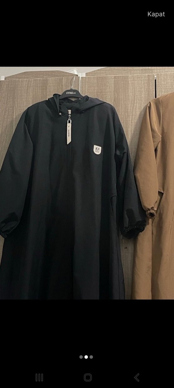 Siyah uzun yağmurluk, kapüşonlu ve bol kesimdir. Yuvarlak yakalı ve uzun kolludur. Yumuşak ve sıcak kumaştan yapılmıştır, minimal ve şık görünüme sahiptir. ☔
