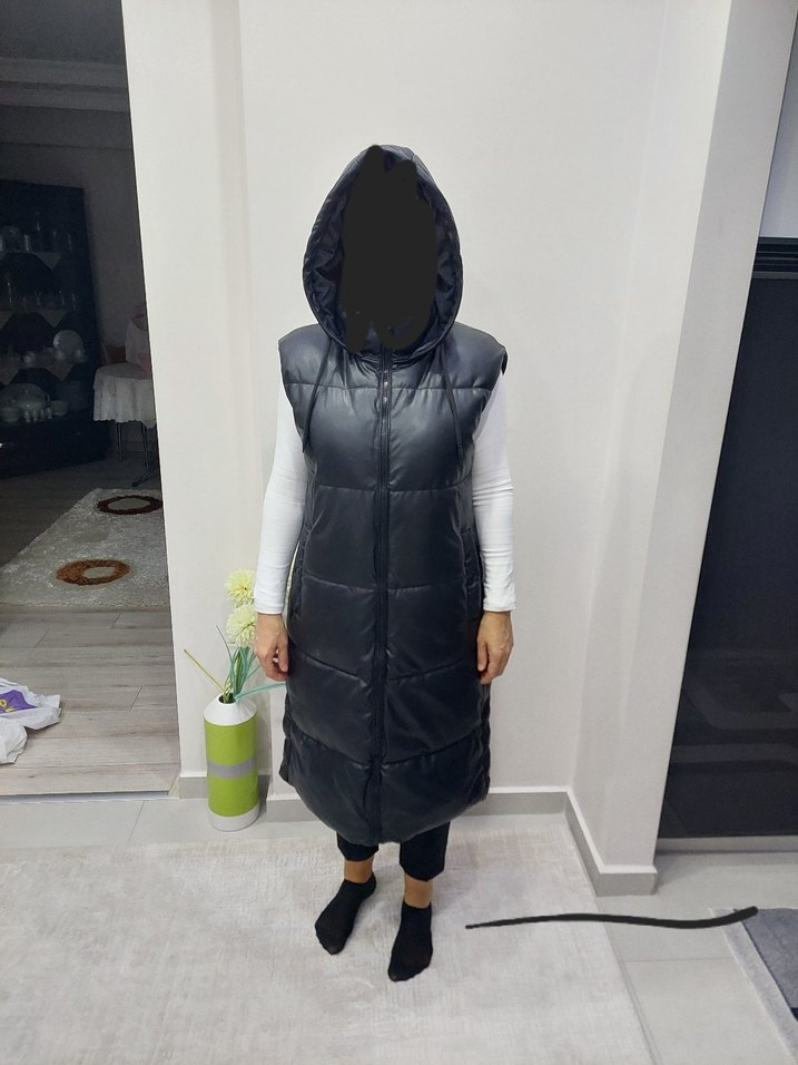 Siyah Kapüşonlu Uzun Kadın Yelek