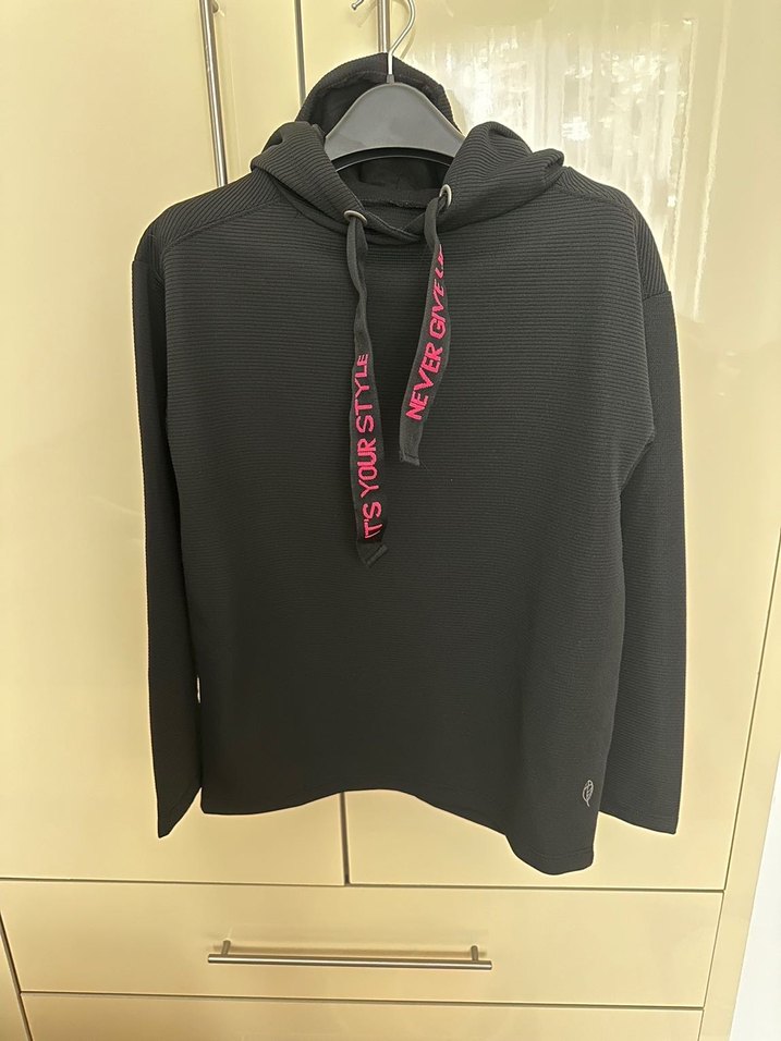 uzun kollu siyah sweatshirt. S bedenlede uyumlu