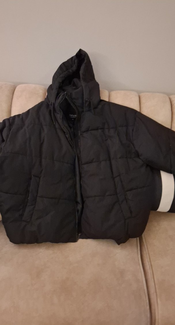 Bu siyah, vücuda oturan kışlık mont, yüksek yakalı ve kabarık tasarıma sahiptir. Yumuşak ve sıcak kumaştan yapılmış, uzun kollu ve kolunda ufak bir yırtık var o yüzden uygun yazdım midi boydadır.