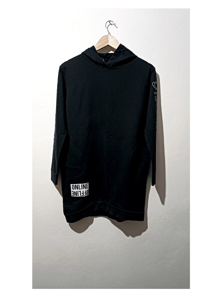 Siyah kapüşonlu sweatshirt, uzun kollu, yumuşak ve sıcak kumaştan. Salaş kesimi ve 'ONLINE' yazılı baskılarıyla günlük sokak stili için uygun. Az giyildi dokusu yumuşacık pamukludur hiçbir sorunu yoktur ölçüleri resim olarak ekledim dar kalıptır