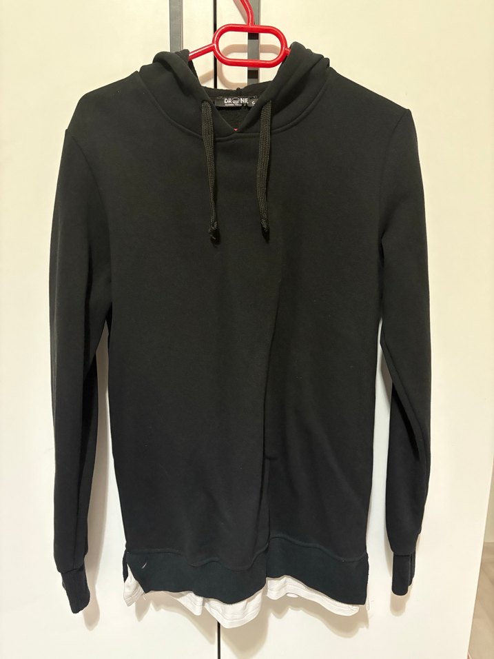 Siyah kapüşonlu, uzun kollu ve yuvarlak yakalı sweatshirt. Yumuşak ve sıcak kumaştan, bol kesim ve günlük rahat sokak stilinde.