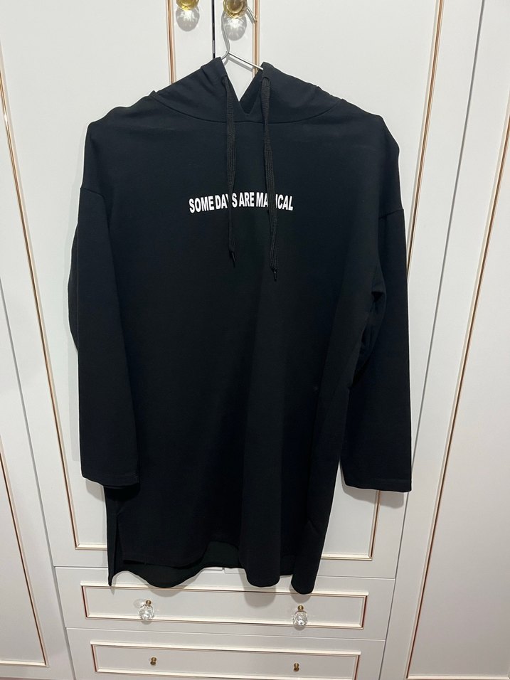Siyah Kapüşonlu Uzun Kollu Sweat elbise
