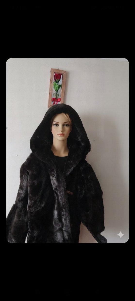 Siyah uzun boylu kapüşonlu kürk mont, yumuşak fleece kumaştan üretilmiş ve bol kesimlidir. Uzun kollu, desensiz gotik tarzda günlük kullanıma uygundur.