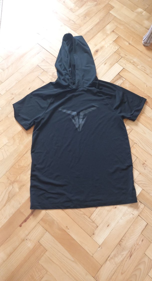 Siyah renkli, V yakalı ve kısa kollu erkek tişörtü. Sentetik kumaştan, bol kesim ve baskılı desene sahip. Spor ve rahat şıklık için uygun.