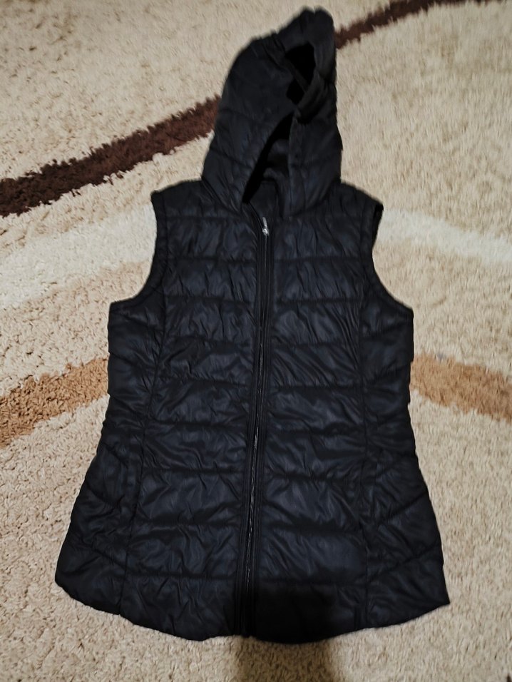 Kolsuz, kapüşonlu ve siyah yelek. Fitted kesim ve midi boy ile rahat ve sıcak bir kullanım sunar.