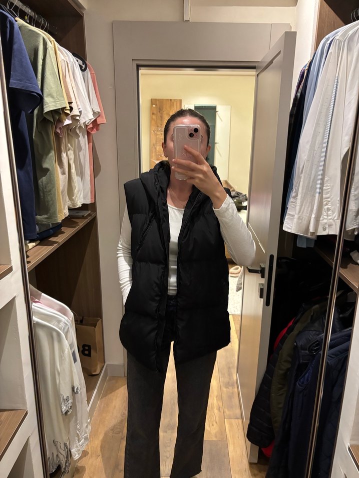 Yumuşak kumaştan, kapüşonlu , yüksek yakalı, siyah renkli kadın yelek. Midi boy ve rahat kesimle günlük kullanıma uygun. S-m-l uyumludur