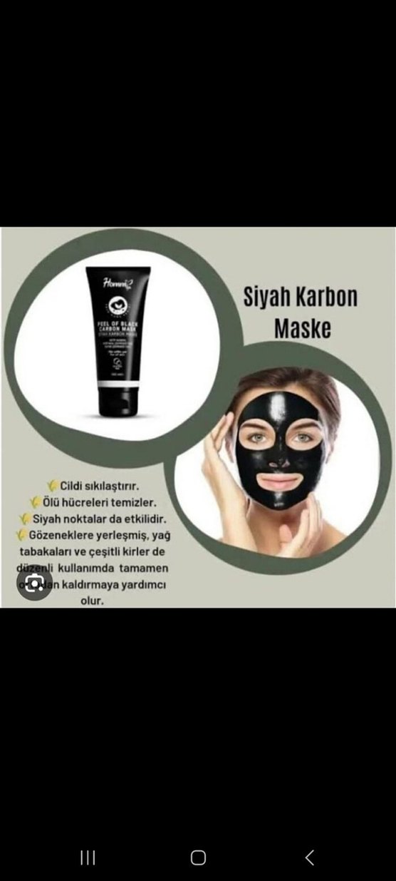 Siyah karbon peeling maskesi, cildi sıkılaştırır, ölü hücreleri temizler ve siyah noktalar üzerinde etkilidir. Gözeneklerdeki yağ ve kirleri düzenli kullanımda giderir.