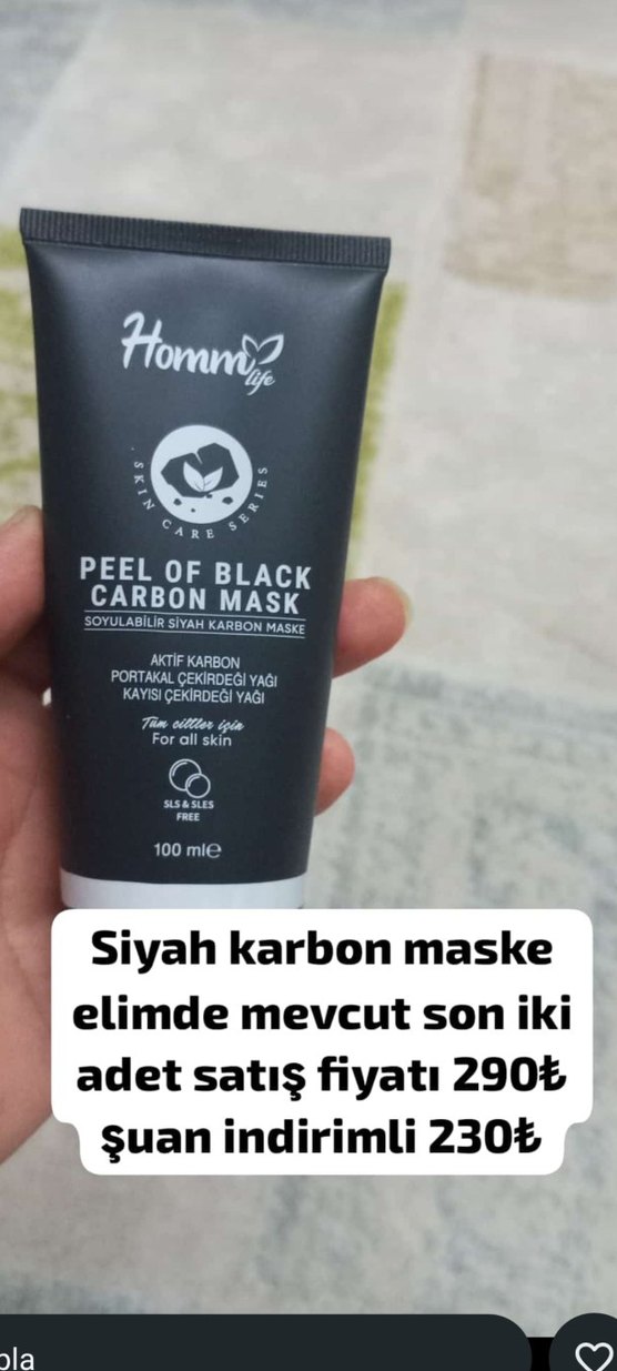 Aktif karbon, portakal çekirdeği yağı ve kayısı çekirdeği yağı içeren soyulabilir siyah karbon maske, 100 ml tüpte ve tüm cilt tiplerine uygundur.