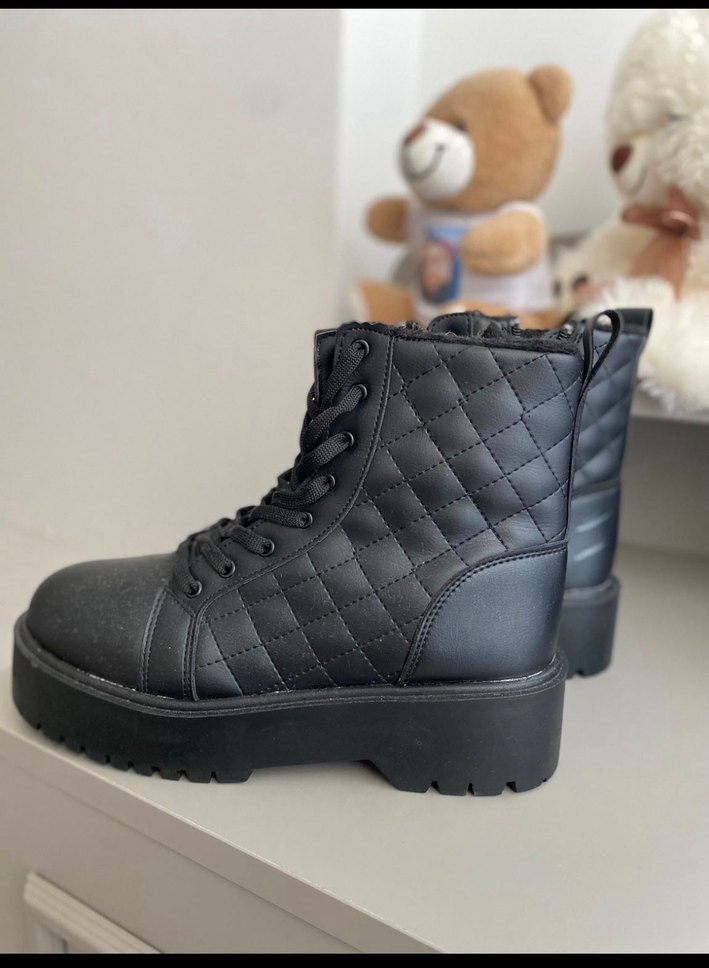 Siyah kare desenli, platform topuklu, lastik tabanlı, tokalı kadın bot. Trendy gündelik bot SIFR ÜRÜN