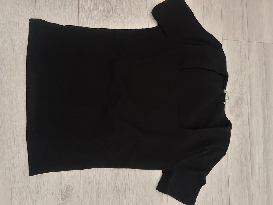 Siyah, düz kesim bluz, kare yaka ve kısa kollu, ipeksi kumaştan yapılmıştır. Günlük kullanım için rahat ve şık bir tercihtir.
