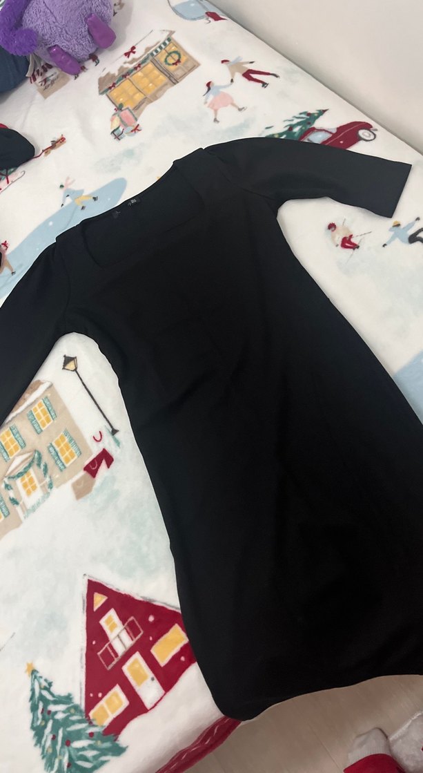 Siyah, kare yakalı, uzun kollu ve midi boy elbisesi. Minimalist gotik tarzıyla zarif ve rahat bir şıklık sunar. Günlük kullanım için uygundur.