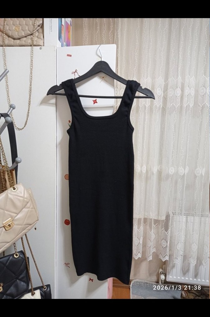 midi boyda siyah triko elbise, minimal ve şık bir günlük stil sunar. s,m giyer 85cm uzunluğunda trndyl bianco lucci den aldim