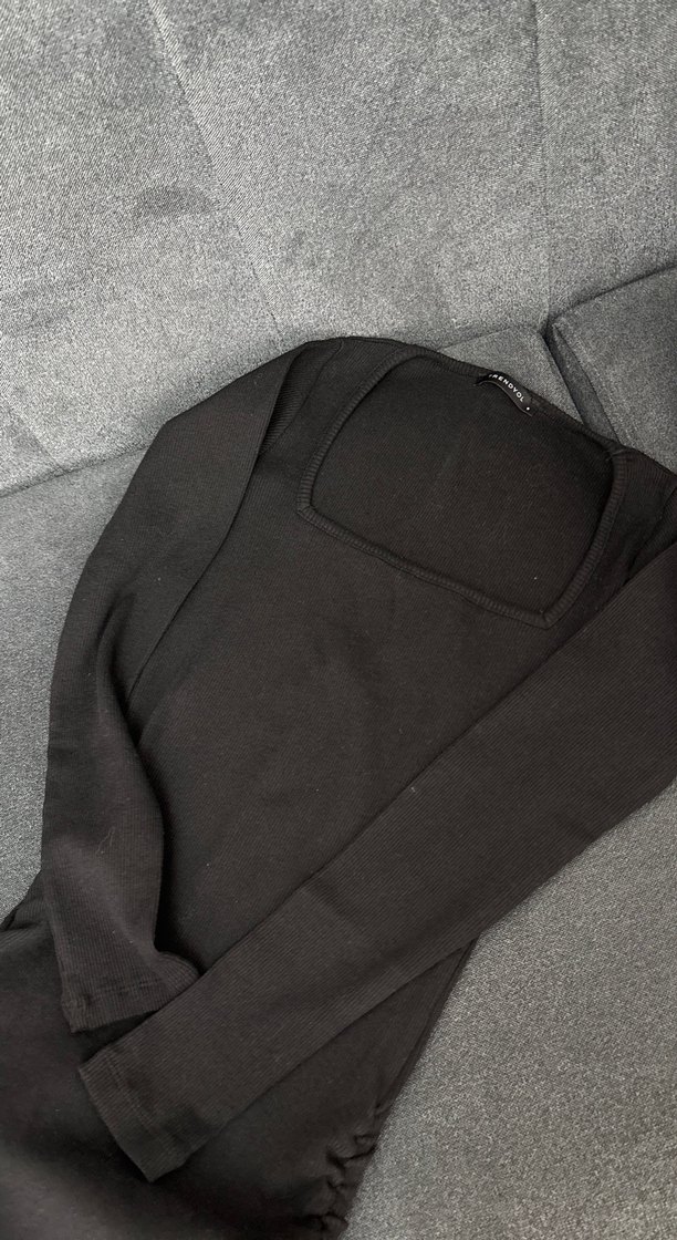 kare yakalı ve uzun kollu, düz siyah renkte, sentetik yumuşak kumaştan yapılmış,kısa uzunlukta ve yanları büzgülüdür.Günlük kullanım için uygundur.