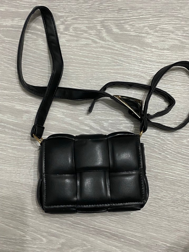 Siyah deri, kareli dolgulu kadın çanta, tokalı askısıyla Paris sokak modasına uygun günlük kullanım için ideal.