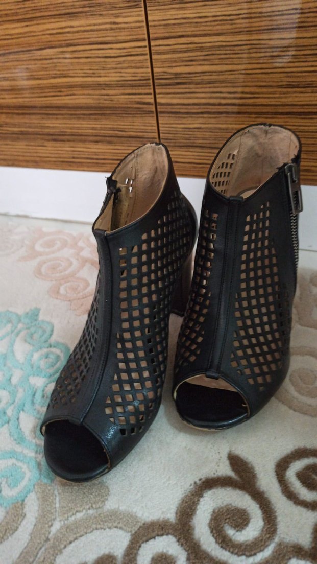 Siyah Kareli Dolgu Topuklu Kadın Ayakkabı