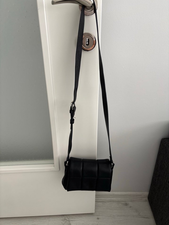 Siyah , kareli desenli, ayarlanabilir tokalı askıya sahip, günlük kullanıma uygun minimalist sokak stili kadın çanta.