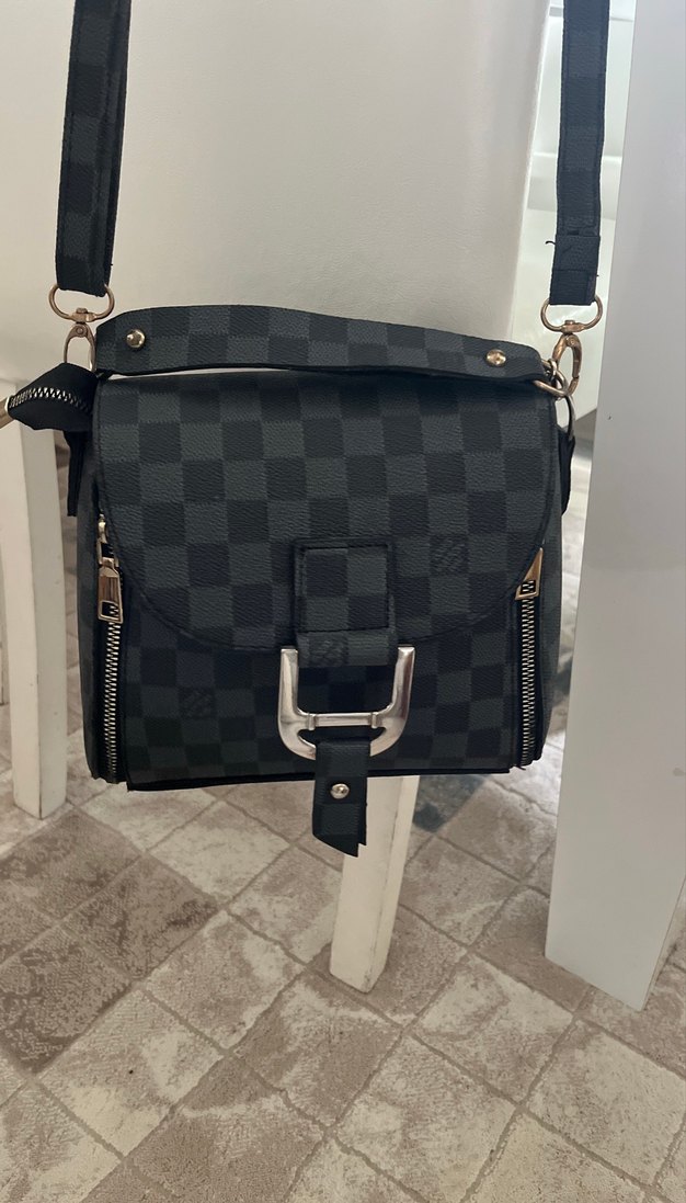 Siyah Kareli Tokalı Kadın Deri Çanta