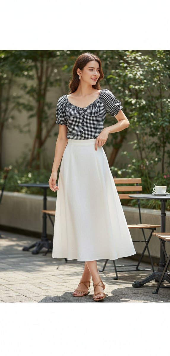 Siyah kareli, kayık yaka ve kısa volanlı kollara sahip bluz. Rahat kesim ve kısa boy ile günlük şıklık sunar. Pamuklu kumaştan üretilmiştir. (uzun süredir dolapta katlı olarak kaldığı için ütüsüzdür satış durumunda düzenleme yaparım)