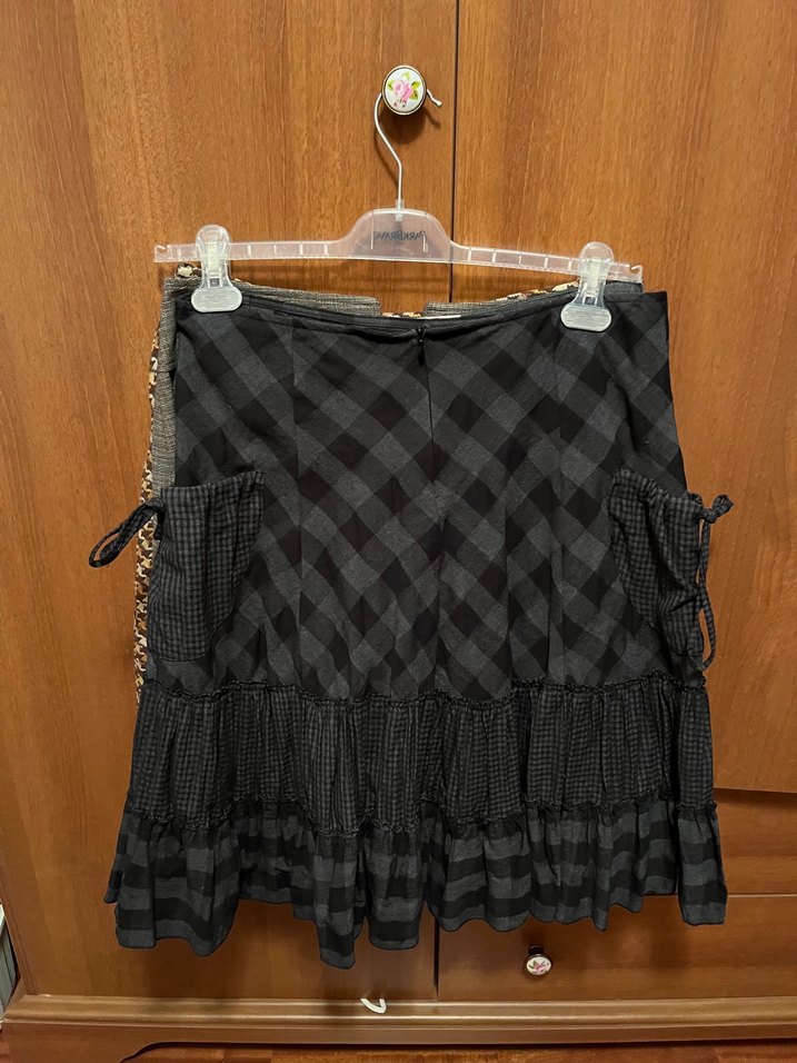 Siyah kareli, sentetik kumaştan, volan detaylı ve bol kesim midi etek. Gotik ve avangard tarz için günlük kullanıma uygundur.