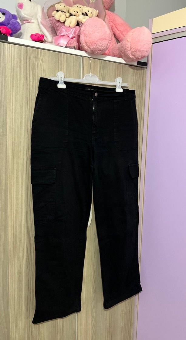 Siyah renkte, kemerli ve bol kesim kadın kot pantolon, midi boyda ve günlük dış mekan kullanıma uygun 2 kere giyildi
