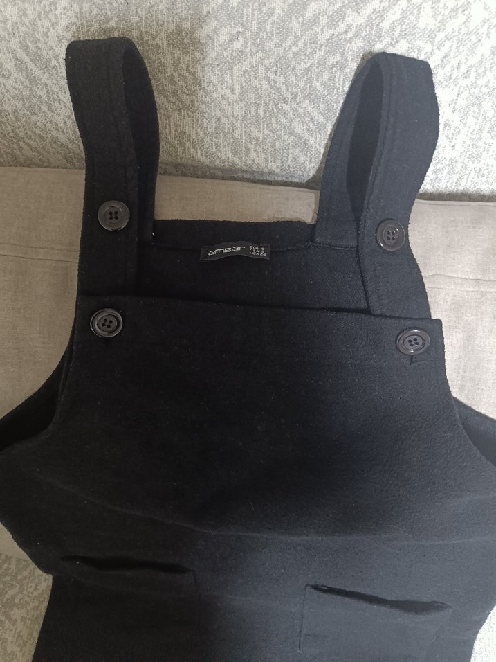 Siyah renkli, cepli ve ayarlanabilir askılı, kaşe kısa slopet