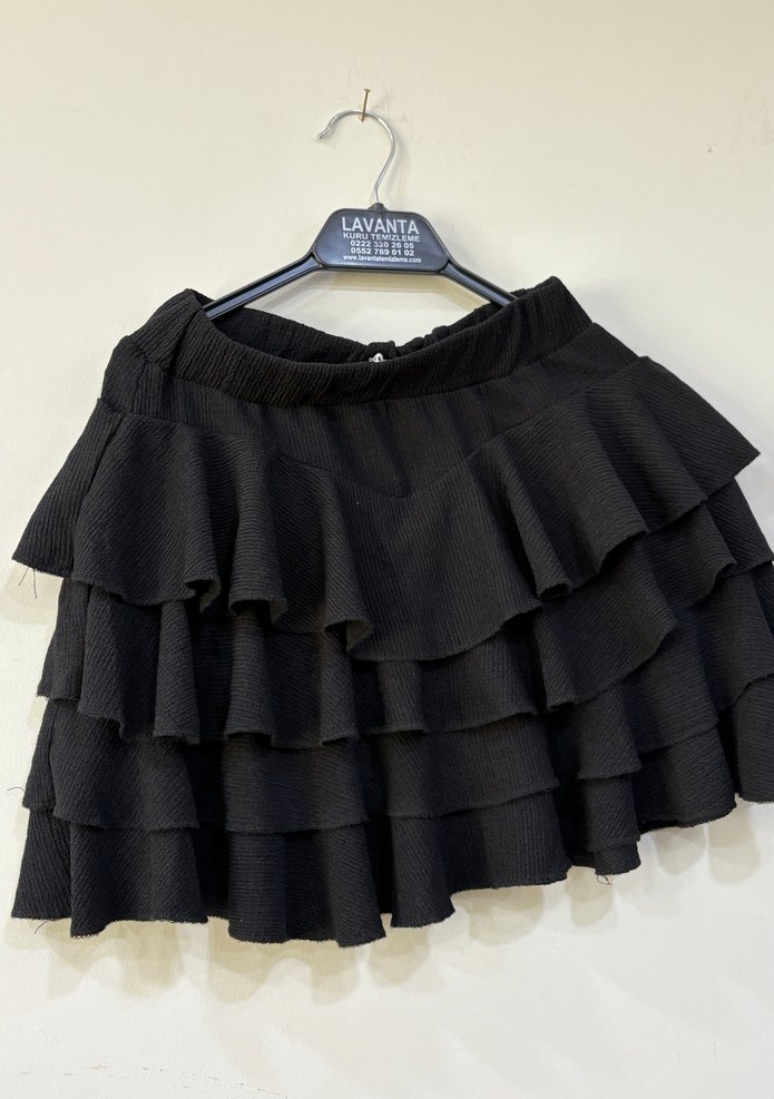 Siyah Kat Kat Volanlı Mini Etek