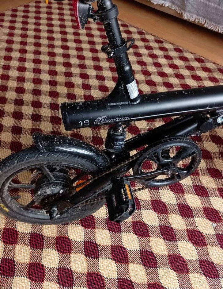 Siyah katlanabilir bisiklet, dayanıklı gövde ve vites sistemi ile kolay saklama ve taşıma sağlar. RKS