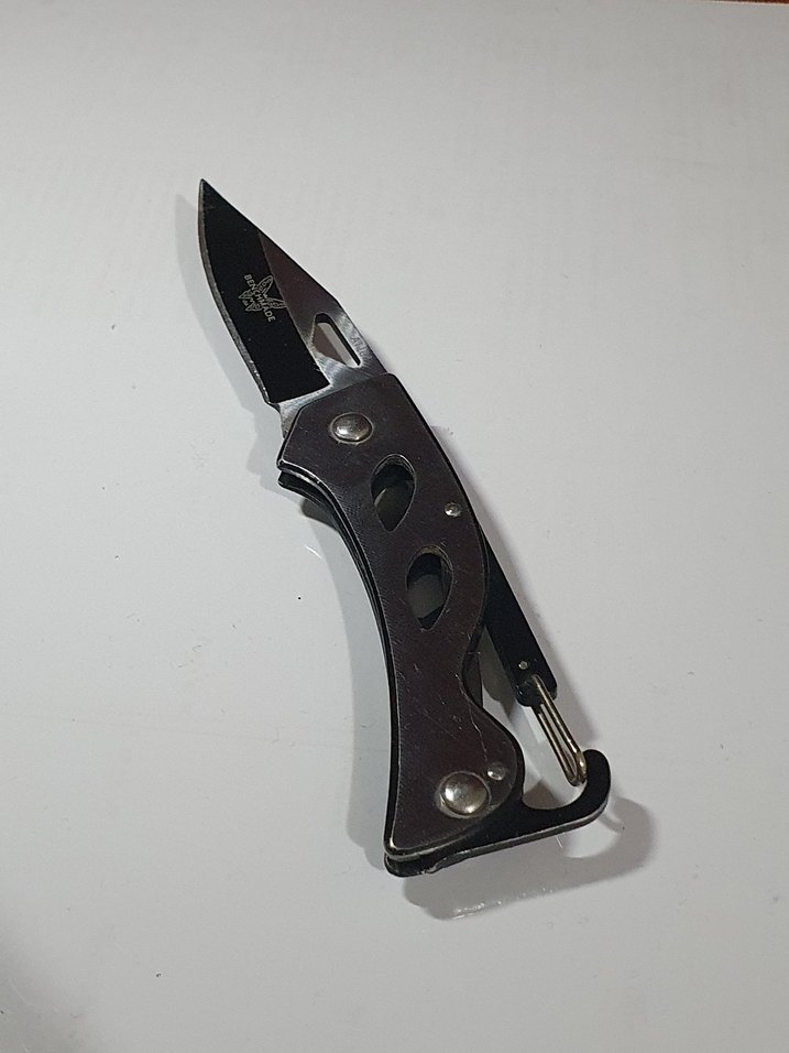 Çeşitli kesme işleri için uygun, kıvrımlı saplı siyah katlanabilir cep çakısı. ️